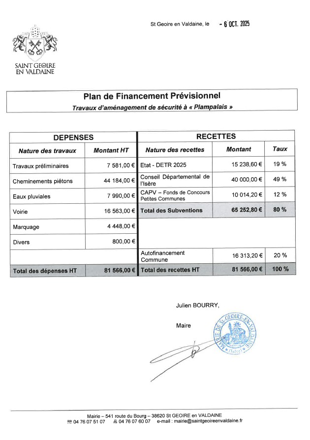 Travaux d'Aménagement de sécurité à "Plampalais"